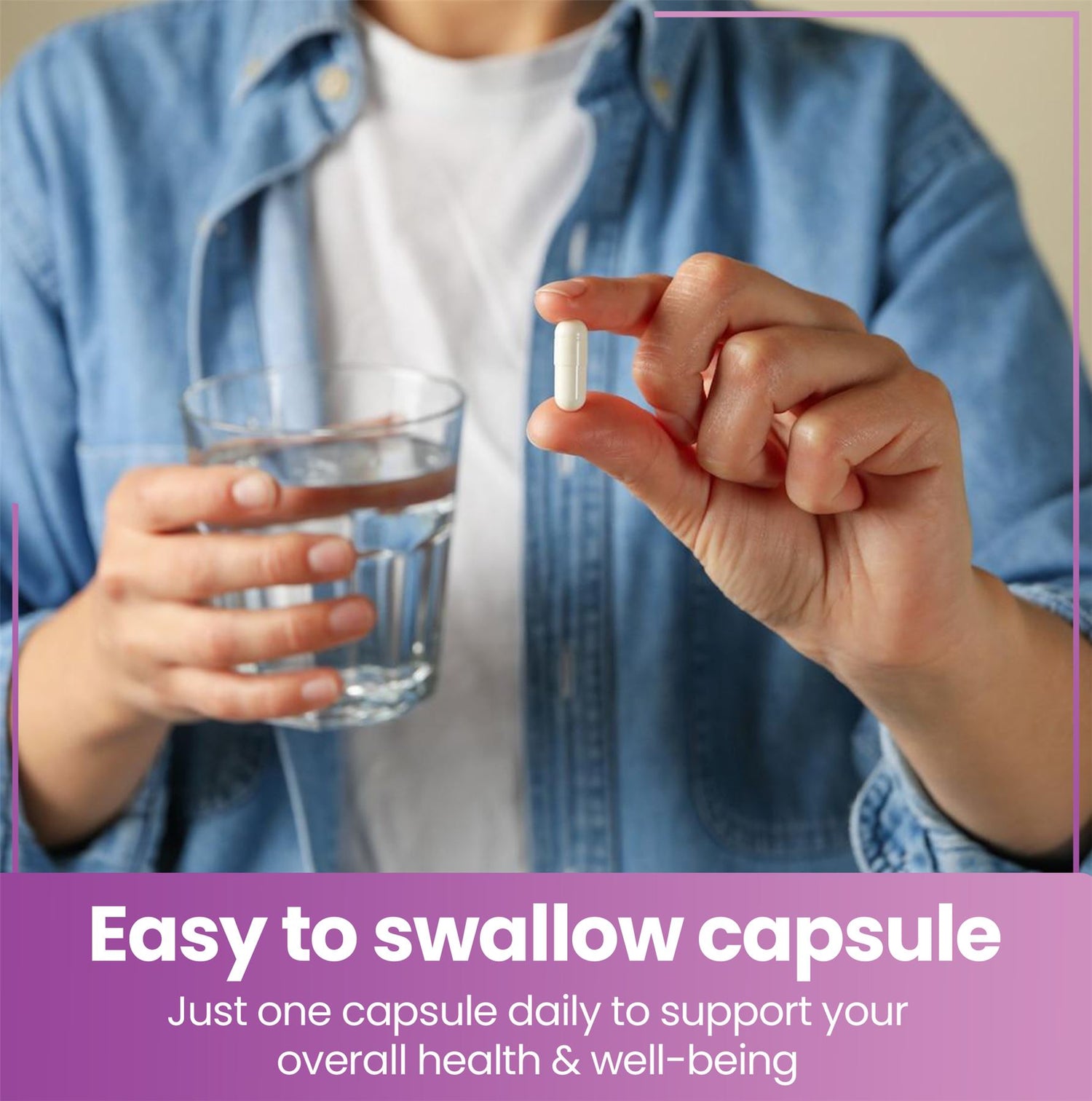 HPMC Capsule shell (Hydroxy Propyl Methyl Cellulose), Silicon Dioxide (anti-caking agent),